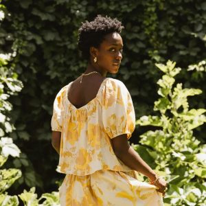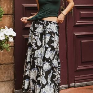 Petra Abstract Smocked Pants in Black - FINAL SALE