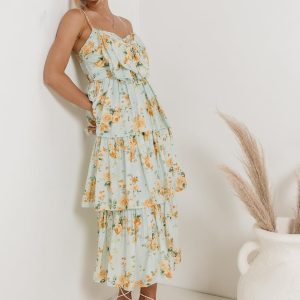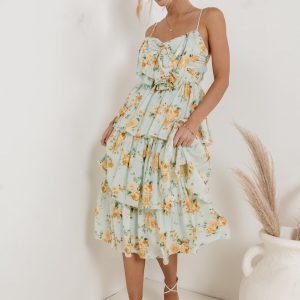 Ava Floral Midi Dress in Sage – FINAL SALE